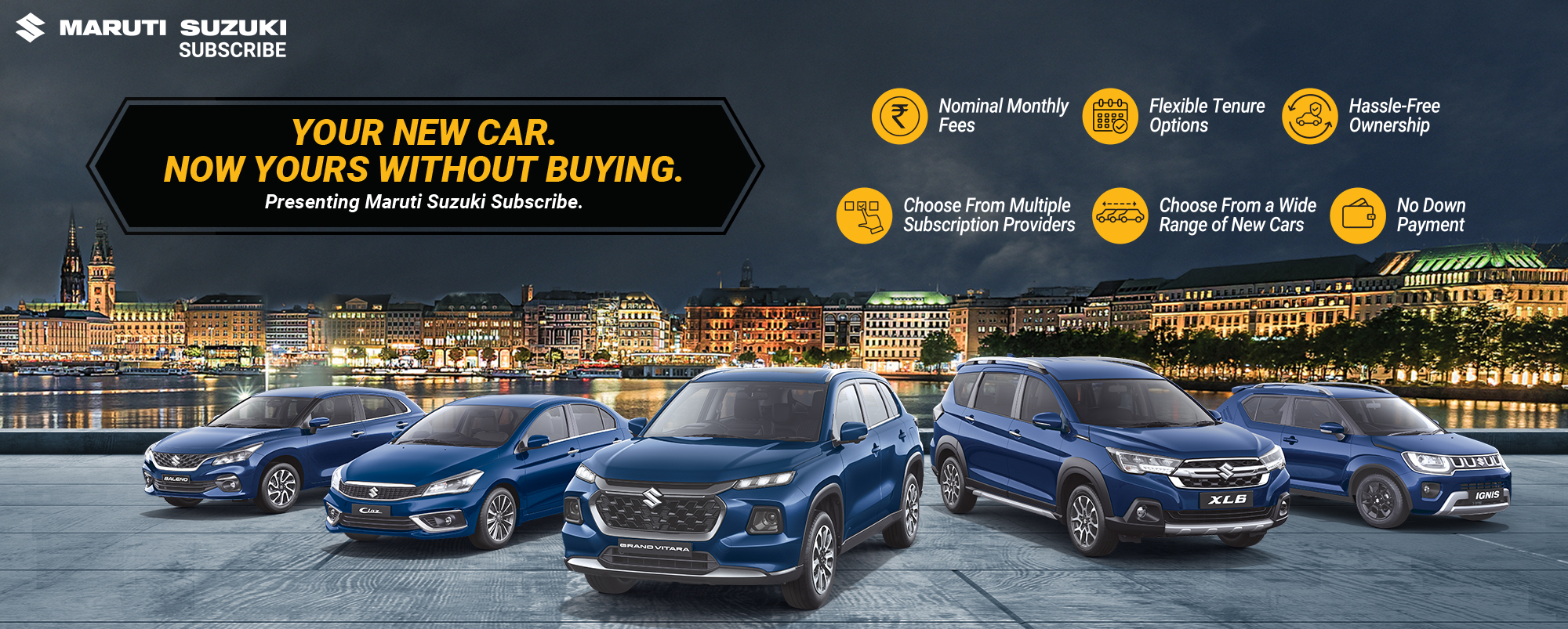 Located in Akola, ASPA offers a plethora of options of Nexa cars for Maruti Suzuki Subscribe. You can choose your desired Maruti Suzuki car and drive it home at nominal monthly fees for a variety of flexible tenure periods. Whether you prefer Hatchback, Sedan, SUV or even MUV you are sure to find it at ASPA, with an easy Maruti Suzuki Subscribe plan.